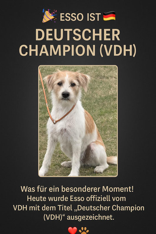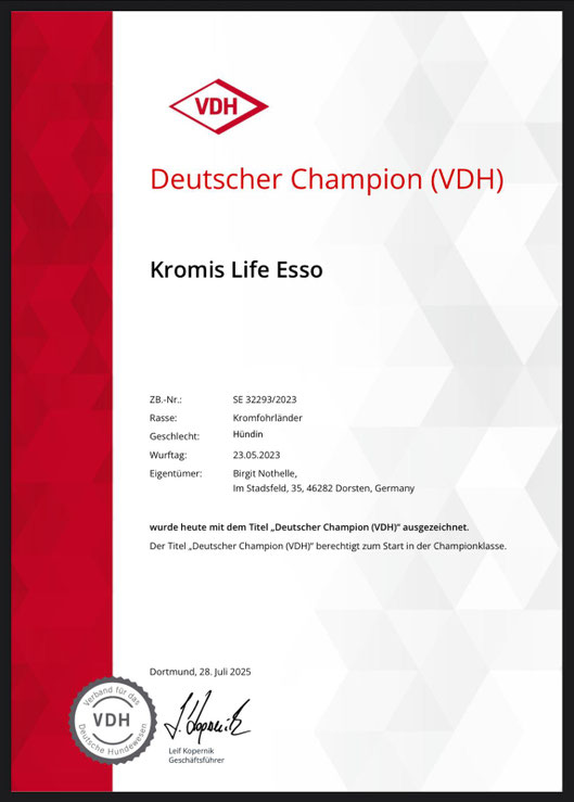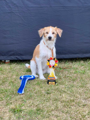 dunkle Augen, gut getragene Ohren, Scherengebiss, guter Hals und gute Schulter, gerade Rückenlinie,